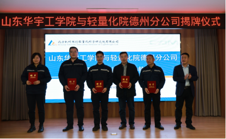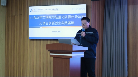 会前,双方领导实地参观了北京机科国创轻量化科学研究院有限公司德州分公司,详细了解了公司运营情况,并针对产学研合作、强化实践基地共建等方面交换了意见,达成系列共识。随后双方举行了签约揭牌仪式,仪式前北京机科国创轻量化科学研究院有限公司德州分公司副总经理陈国松发表致辞。在双方的共同见证下,北京机科国创轻量化科学研究院有限公司德州分公司副总经理陈国松与leyu乐鱼官网校长助理魏东坡为大学生创新创业实践基地签署合作协议,并共同为大学生创新创业实践基地揭牌。