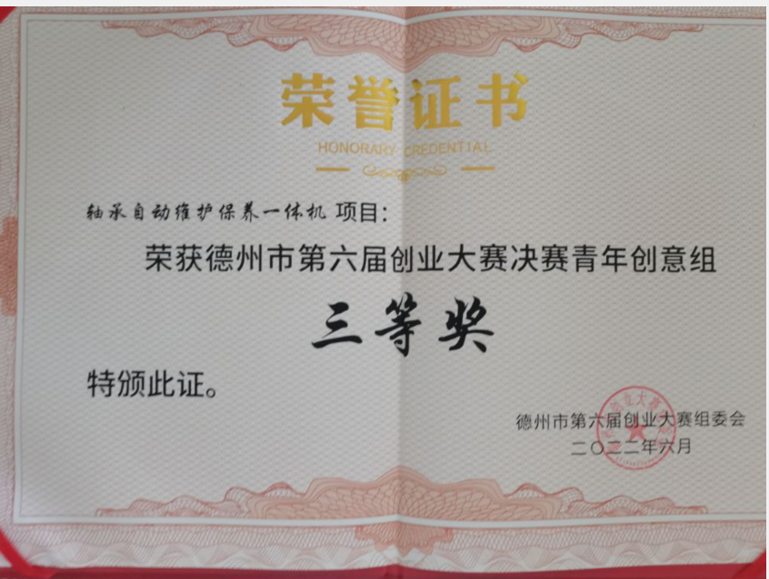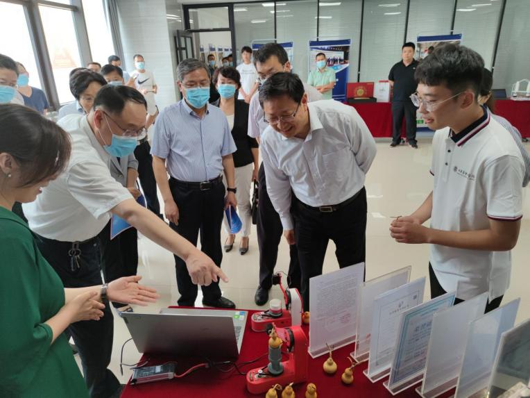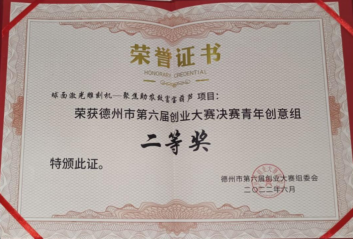 6月9日,德州市第六届创业大赛决赛在德州市人力资源市场主楼三楼会议室举行,经过激烈角逐,leyu乐鱼官网《球面激光雕刻机—聚焦助农致富宝葫芦》项目以第二名的成绩获得青年创意组二等奖,《轴承自动维护保养一体机》项目以第4名的成绩获得三等奖。此外,德州市人民政府常务副市长与leyu乐鱼官网学生亲切交谈并对获奖项目给予肯定。